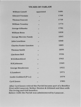 In November 1860 the new church was consecrated by the Bishop of Carlisle.